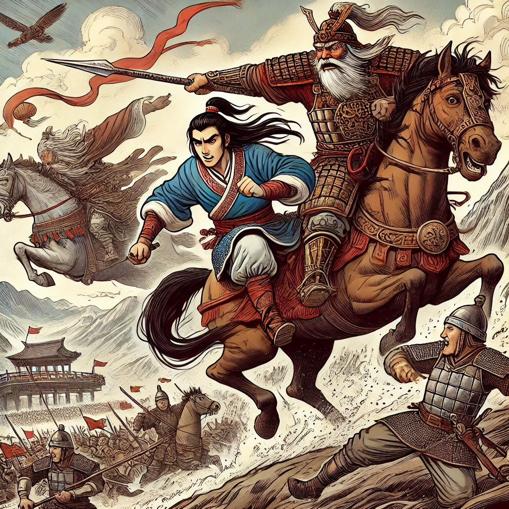 갑자기 풀밭 언덕 왼쪽에서 한 젊은 장수가 튀어나왔다.