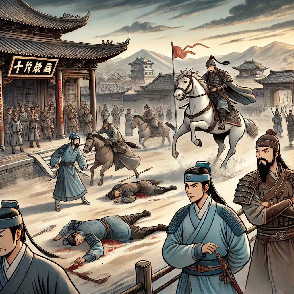 문추가 말을 채찍질하며 분노의 목소리로 소리쳤다.