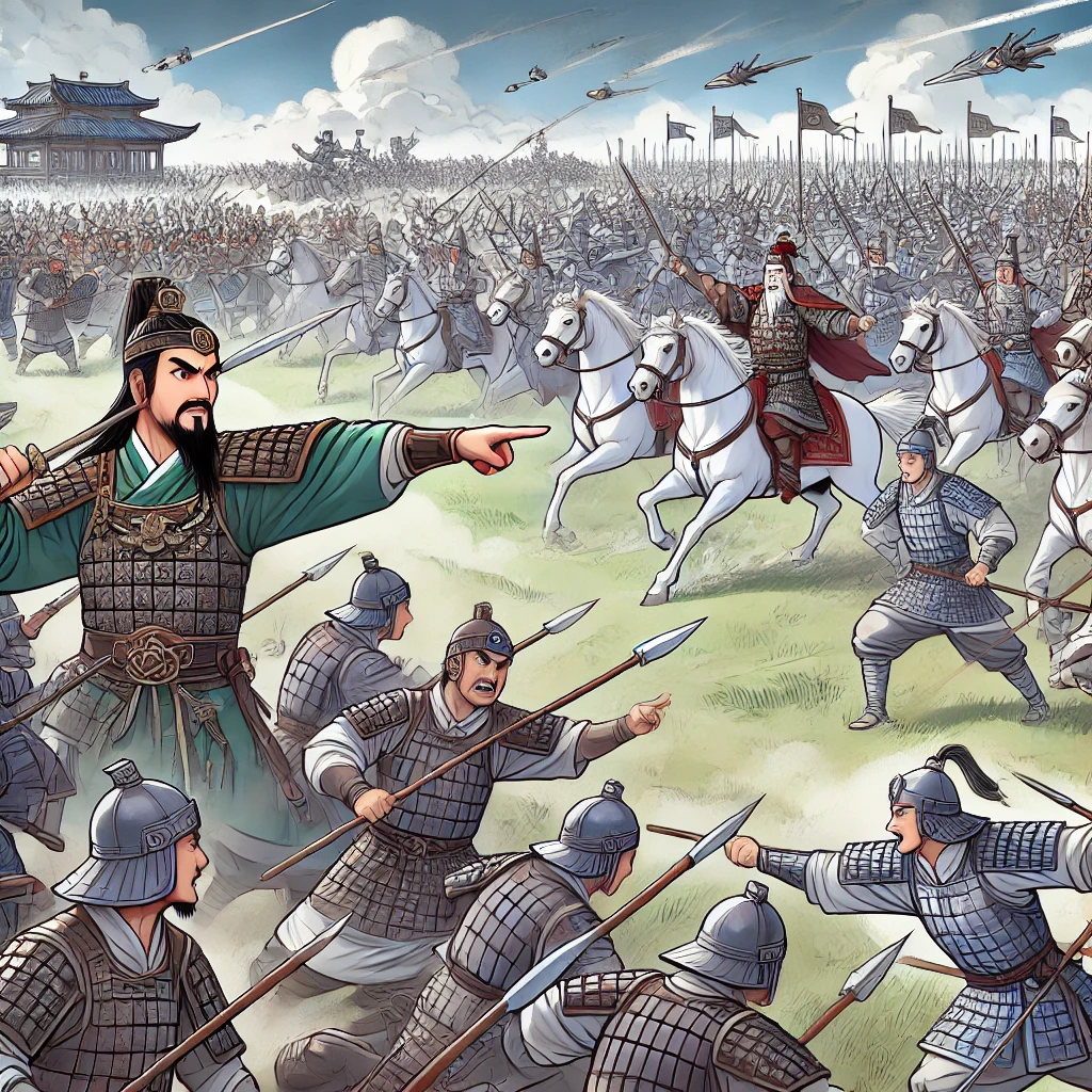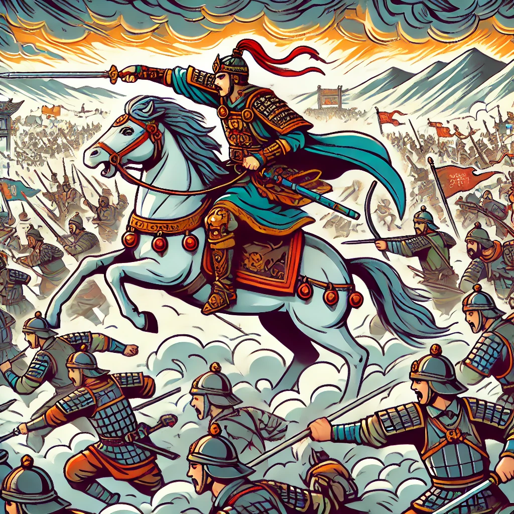 조운은 홀로 말을 타고 원소의 군대로 뛰어들어 좌우로 적들을 쳐부수며 아무런 거리낌 없이 적진을 돌파했다.