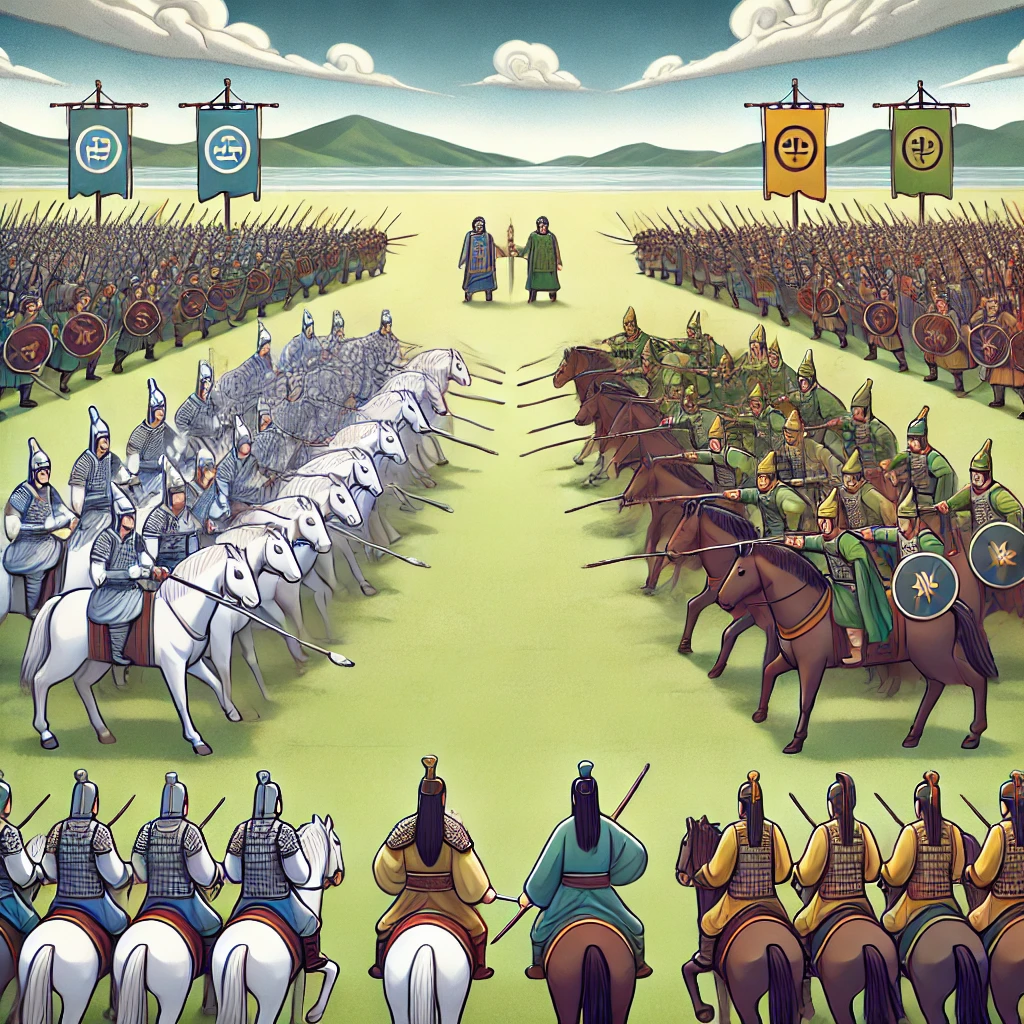“빨리 말에서 내려 항복하라!”